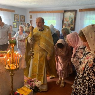 Богослужіння у сільській хатині очолив благочинний Мурованокуриловецького округу протоієрей Василій Балан, у співслужінні настоятеля парафії протоієрея Ігоря Клос та духовенства благочиння.